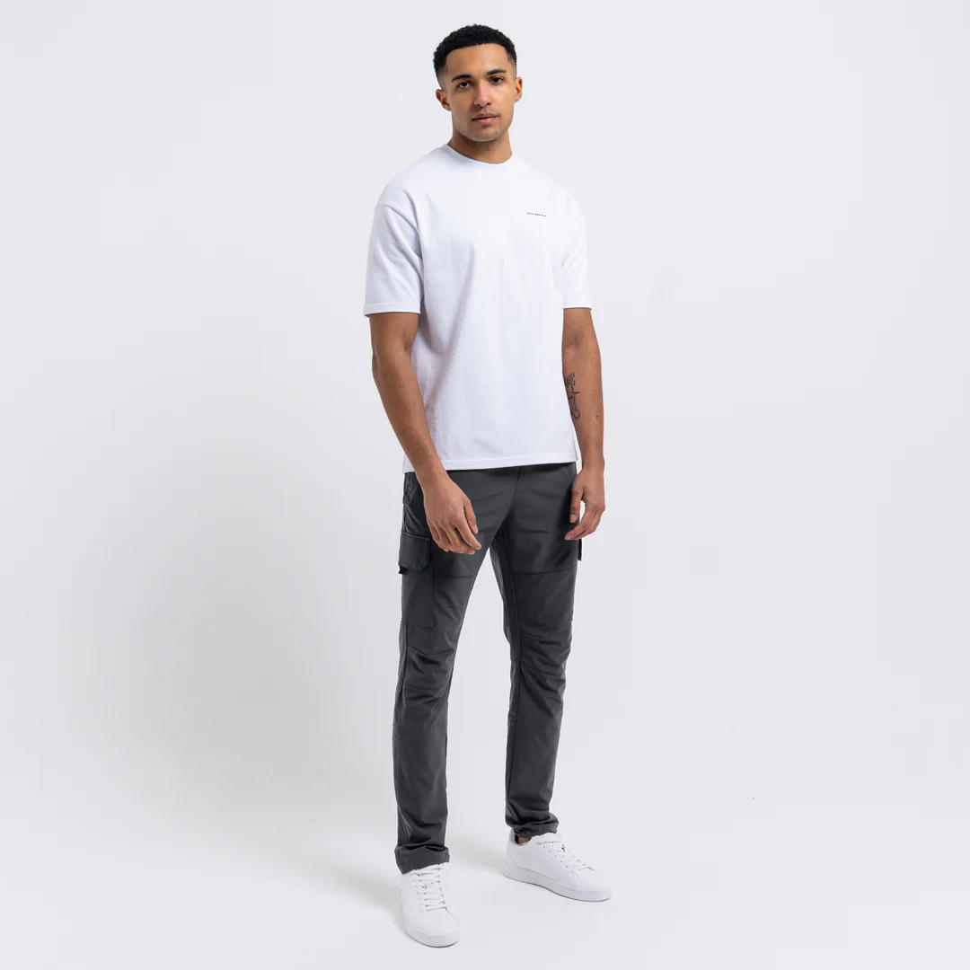 The Guardiola's are regular fit cargo pants in charcoal, featuring multiple utility pocket design, metal 'D' ring pulls, branded pocket label, and cargo fabric. The waist and ankles feature toggles so you can customise your fit, whether you prefer baggy or tight.